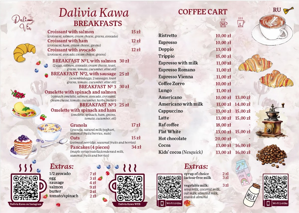 DaliVia Kawa. Kawiarnia i cukiernia # 1 w Krakowie Menu